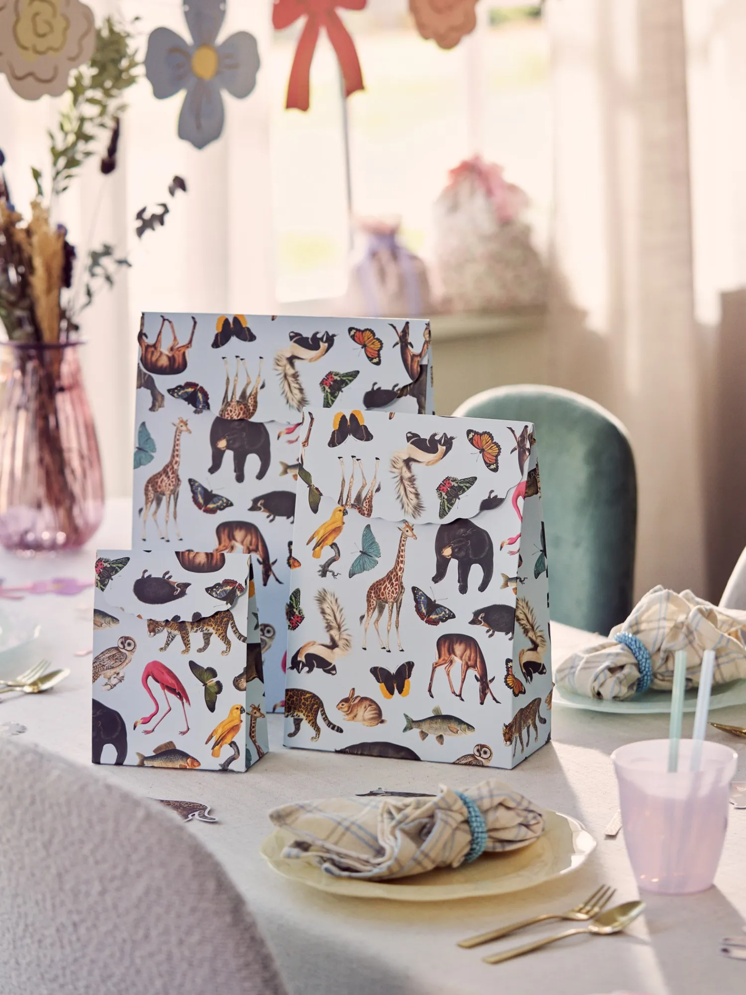 Søstrenes gavepose som er formet som en konvolutt, er laget av FSC®-sertifisert papir, og den har en liten borrelås som gjør det enkelt å åpne og lukke den, slik at den kan brukes flere ganger.