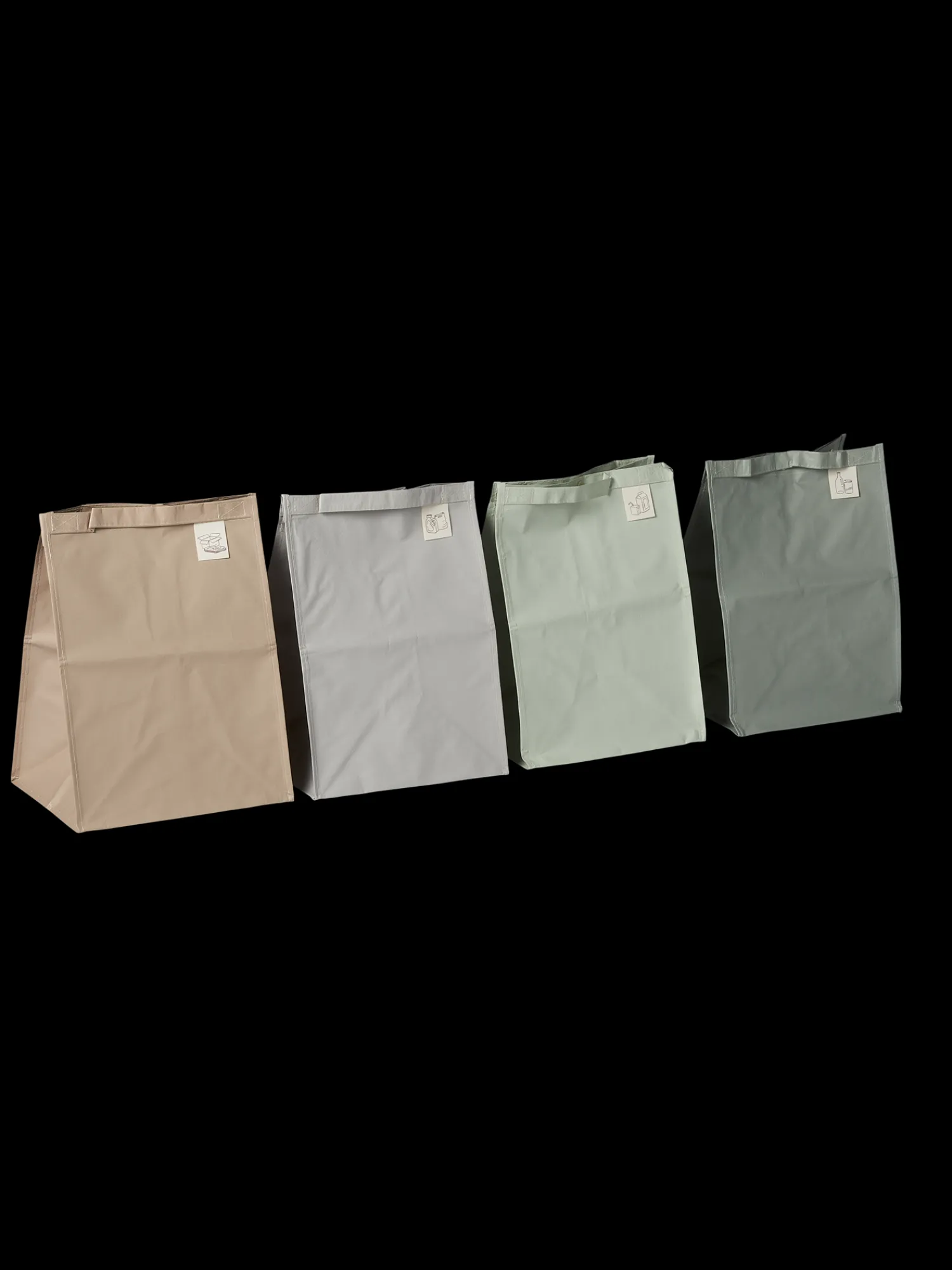 Søstrenes kildesorteringsposesett består av fire poser med hver sin sorteringslogo. Hver pose kan brettes sammen, og etikettene kan klippes av hvis posene skal brukes til andre ting. Søstrene anbefaler at De gjør Dem kjent med reglene for kildesortering der De bor.