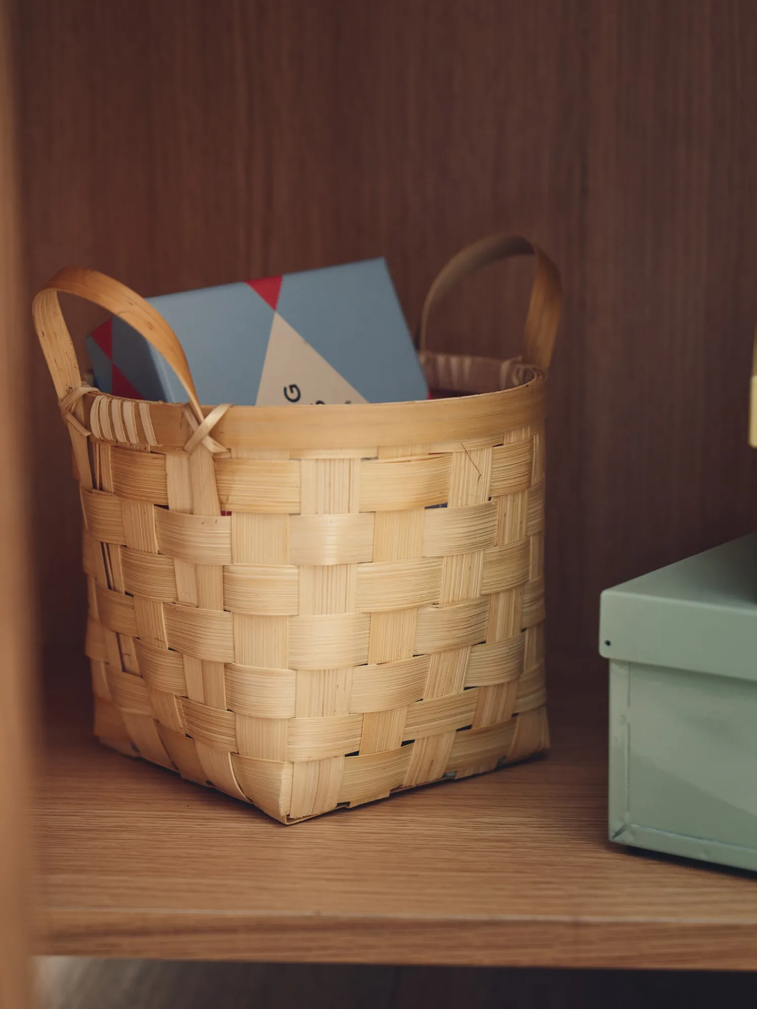 Søstrenes kurv er laget av 100 % FSC®-sertifisert bambus, og den er 24 x 24 x 16 cm.Siden produktet er laget av et naturlig materiale, minner søstrene vennlig om at fargen og mønsteret kan avvike noe.