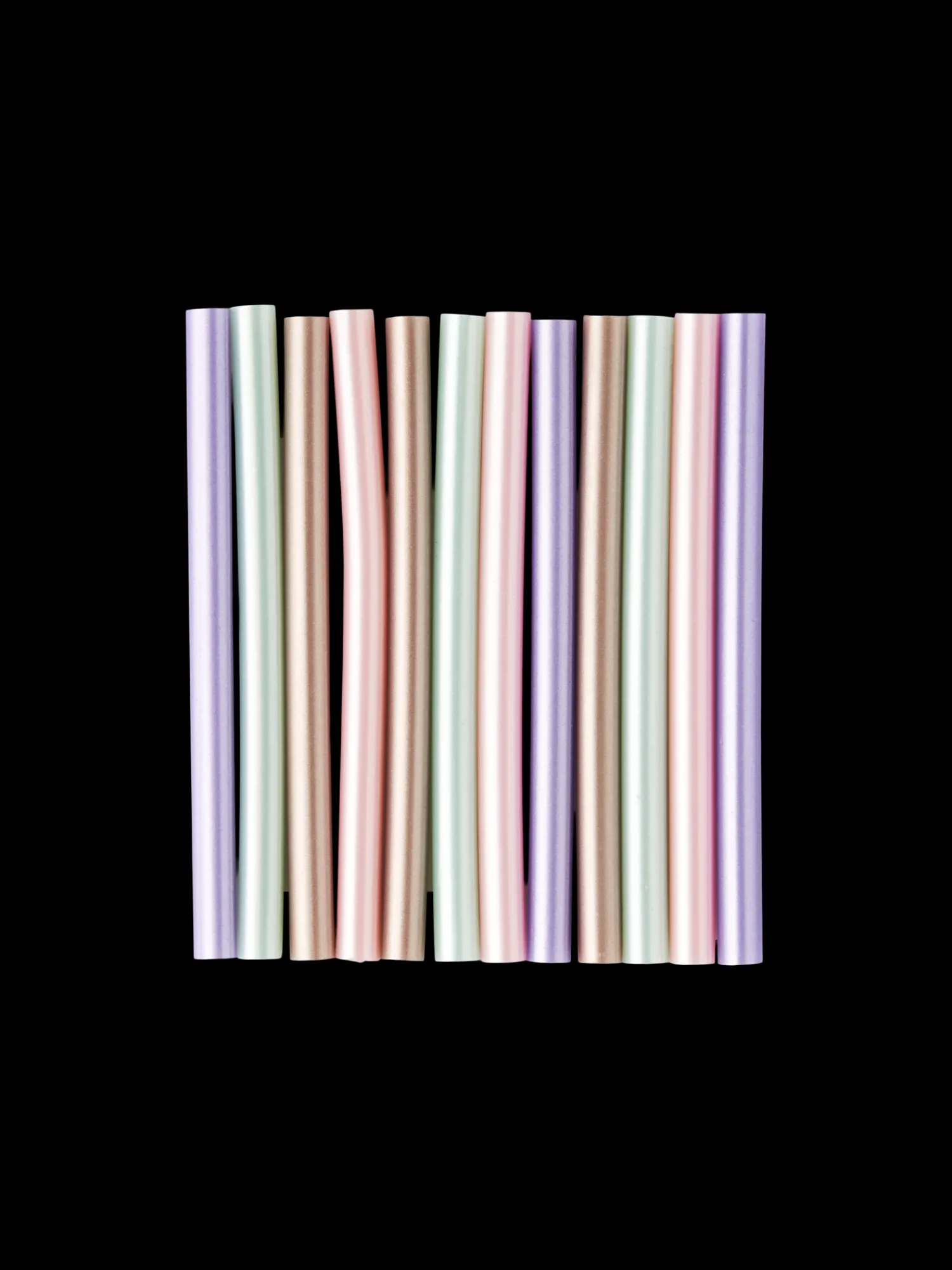 Søstrenes limpatroner selges i en pakke med tolv stykker i assorterte metalliske farger.
