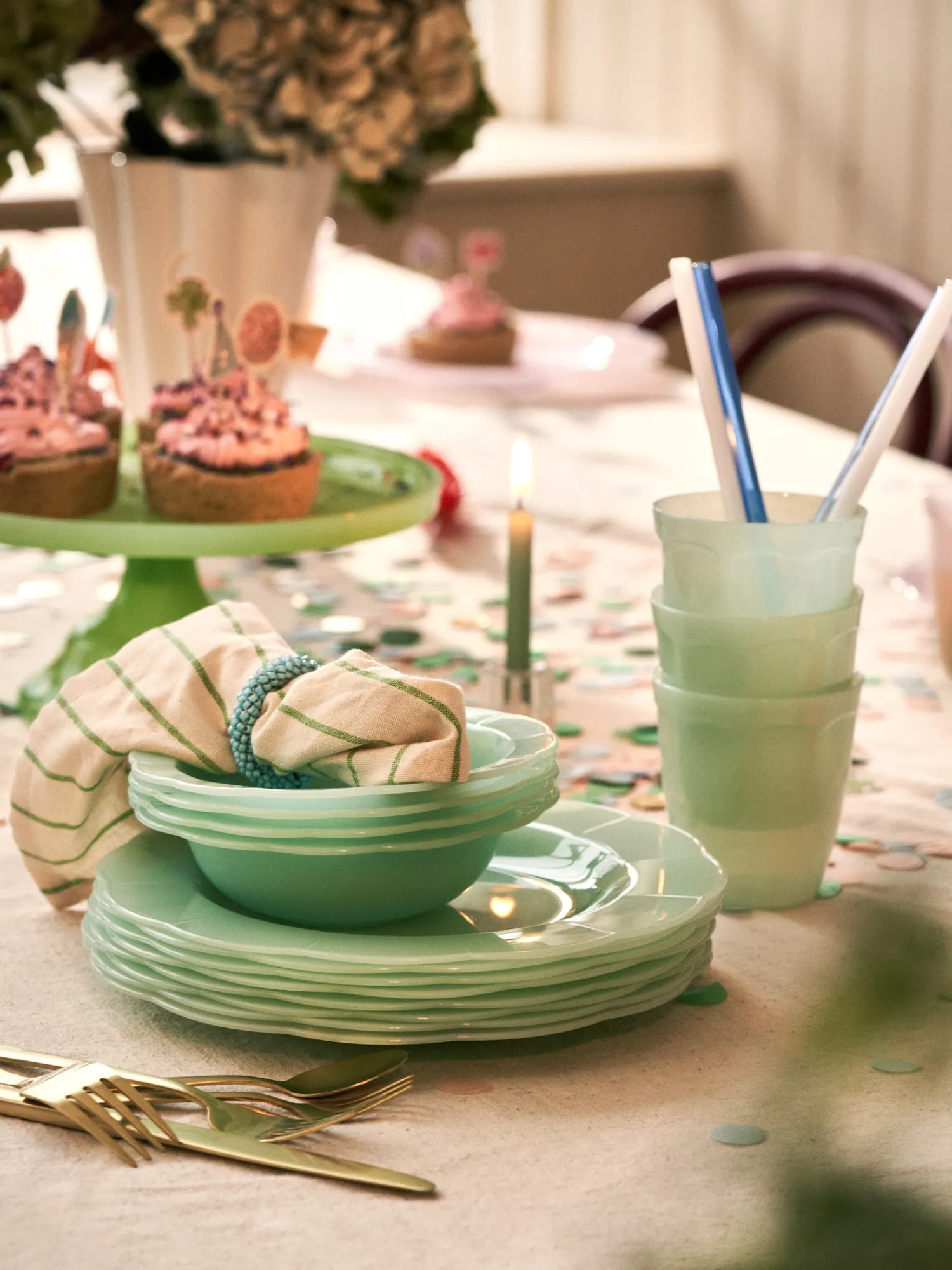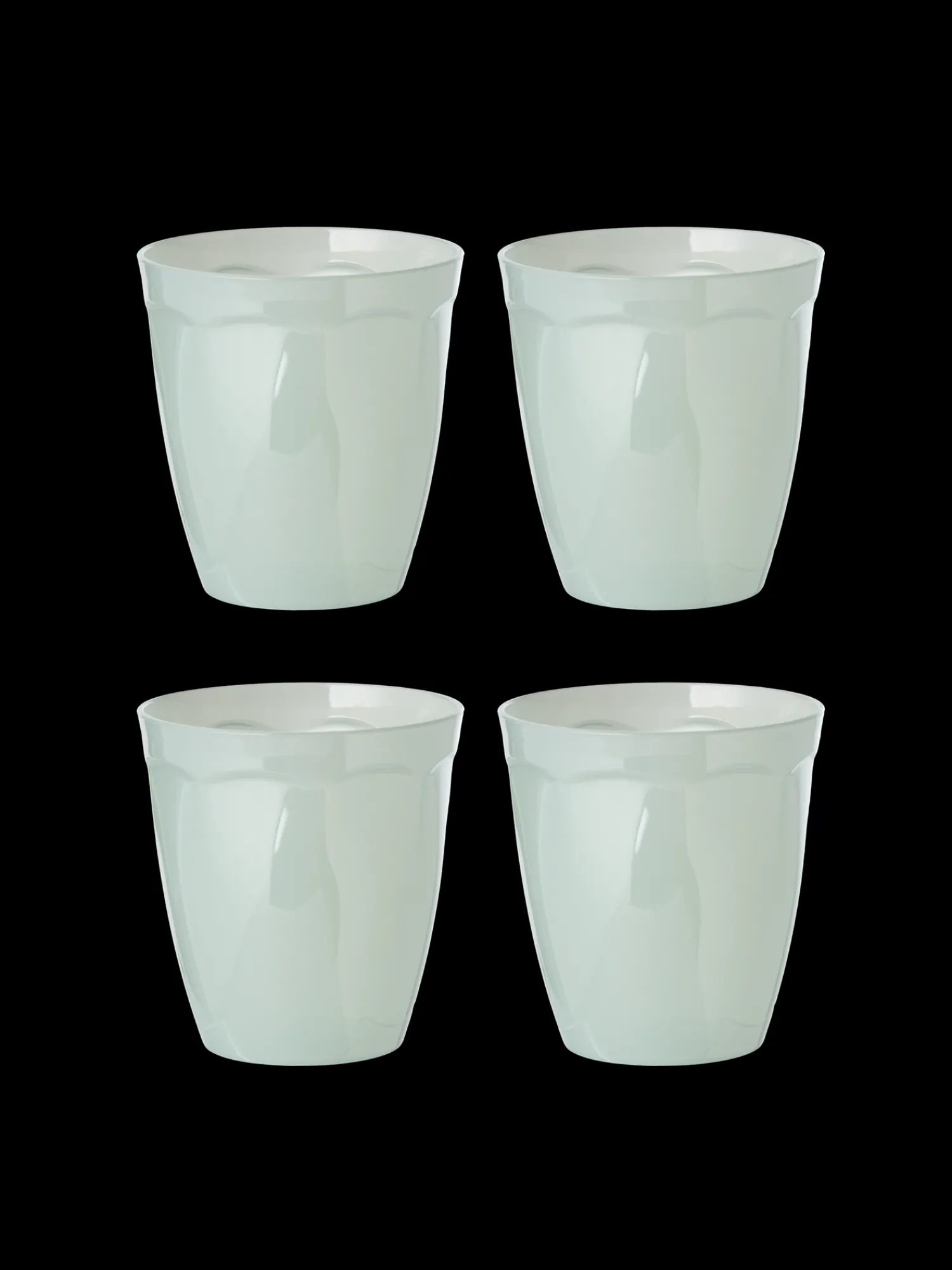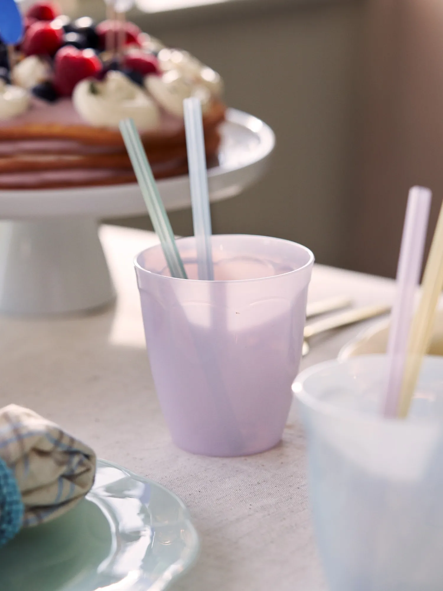 Søstrenes glass av polystyren er 8,5 cm i diameter og kan gjenbrukes. Pakken inneholder fire glass. Glassene er produsert i Italia.Glassene er en del av kolleksjonen vår av plasttallerkener og -glass som kan gjenbrukes til pikniker, strandturer og livets små og store øyeblikk.Den allsidige serien er et alternativ til engangstallerkener og -kopper av papp, som vi har bestemt oss for å fase ut som en del av Søstrene Grenes miljøstrategi. Hos Søstrene Grene jobber vi steg for steg for å lage et sortiment som påvirker miljøet i så liten grad som mulig, og dette er bare ett av mange tiltak.Søstrene legger vennlig til at disse glassene tåler fryser og oppvaskmaskin opptil 70 grader, men at de ikke tåler mikrobølgeovn eller stekeovn.