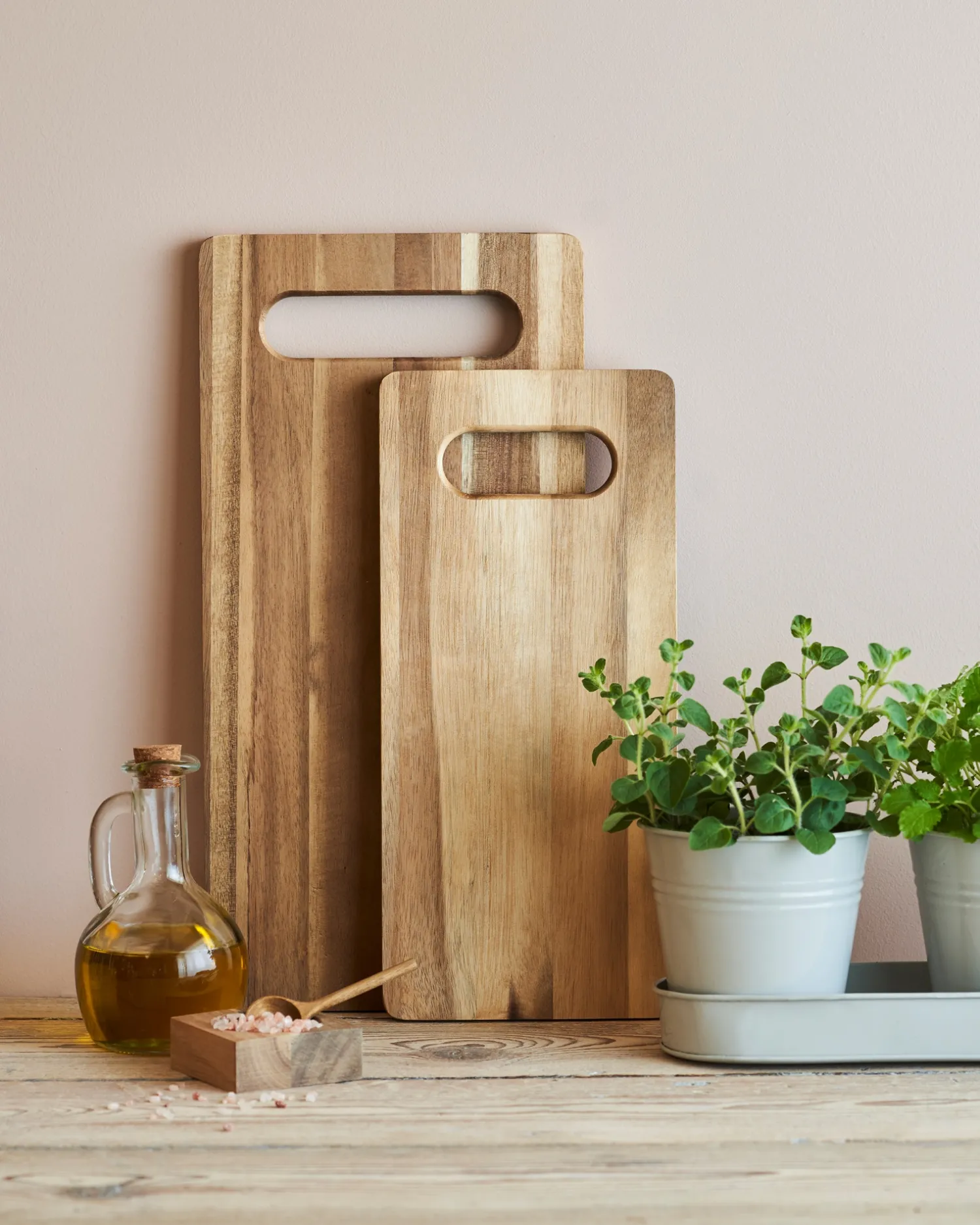 Søstrenes skjærebrett er laget av FSC®-sertifisert akasie, og det er 14,5 x 31,5 cm.Siden akasie er et naturlig materiale, minner søstrene vennlig om at produktet kan avvike noe i farge og mønster.