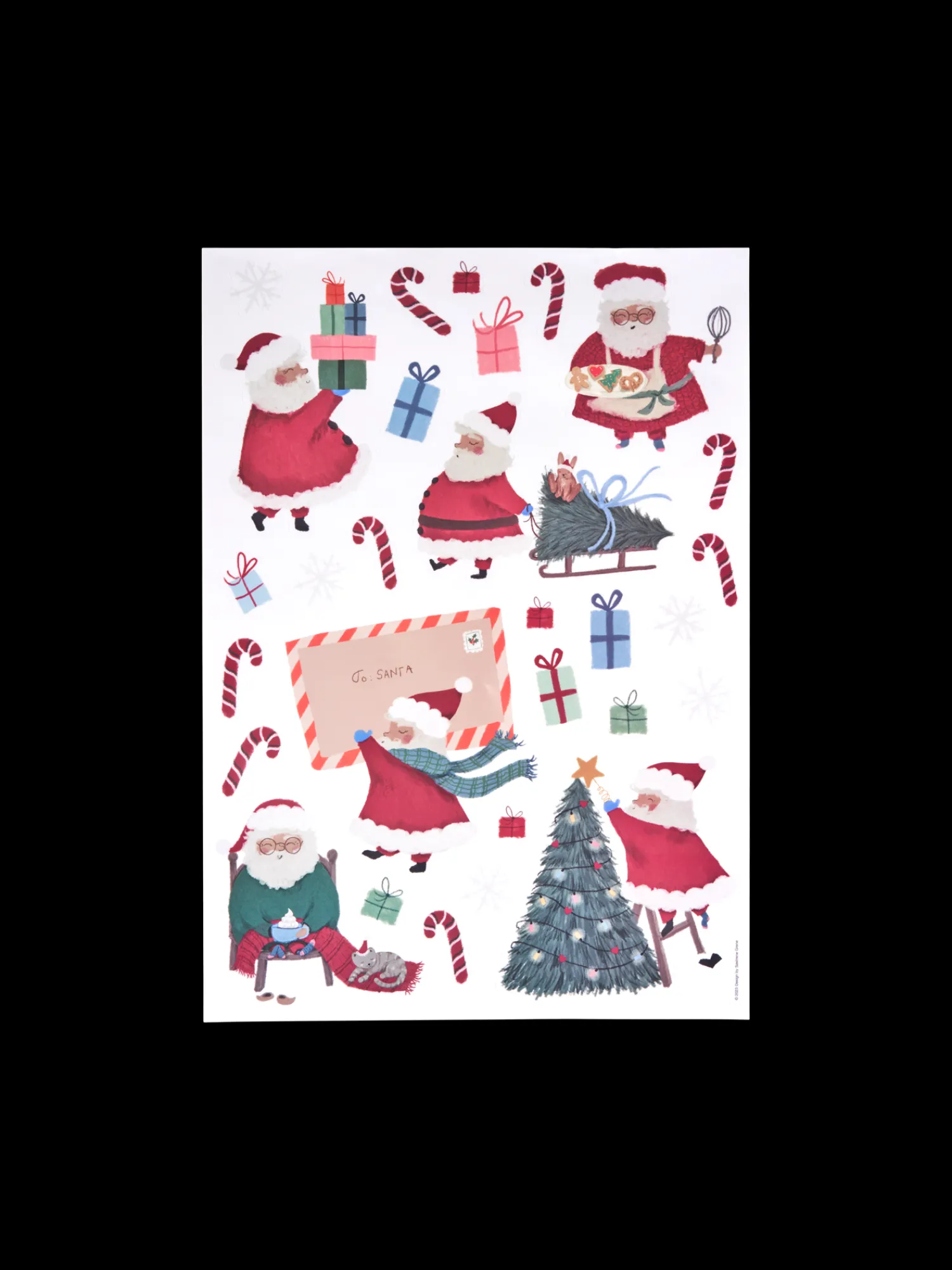 Søstrenes vindusklistremerker er laget av 100 % FSC®-sertifisert papir samt PET. Arket er i A3-format, og det har forskjellige julemotiver som De kan bruke til å pynte vinduene i høytiden.