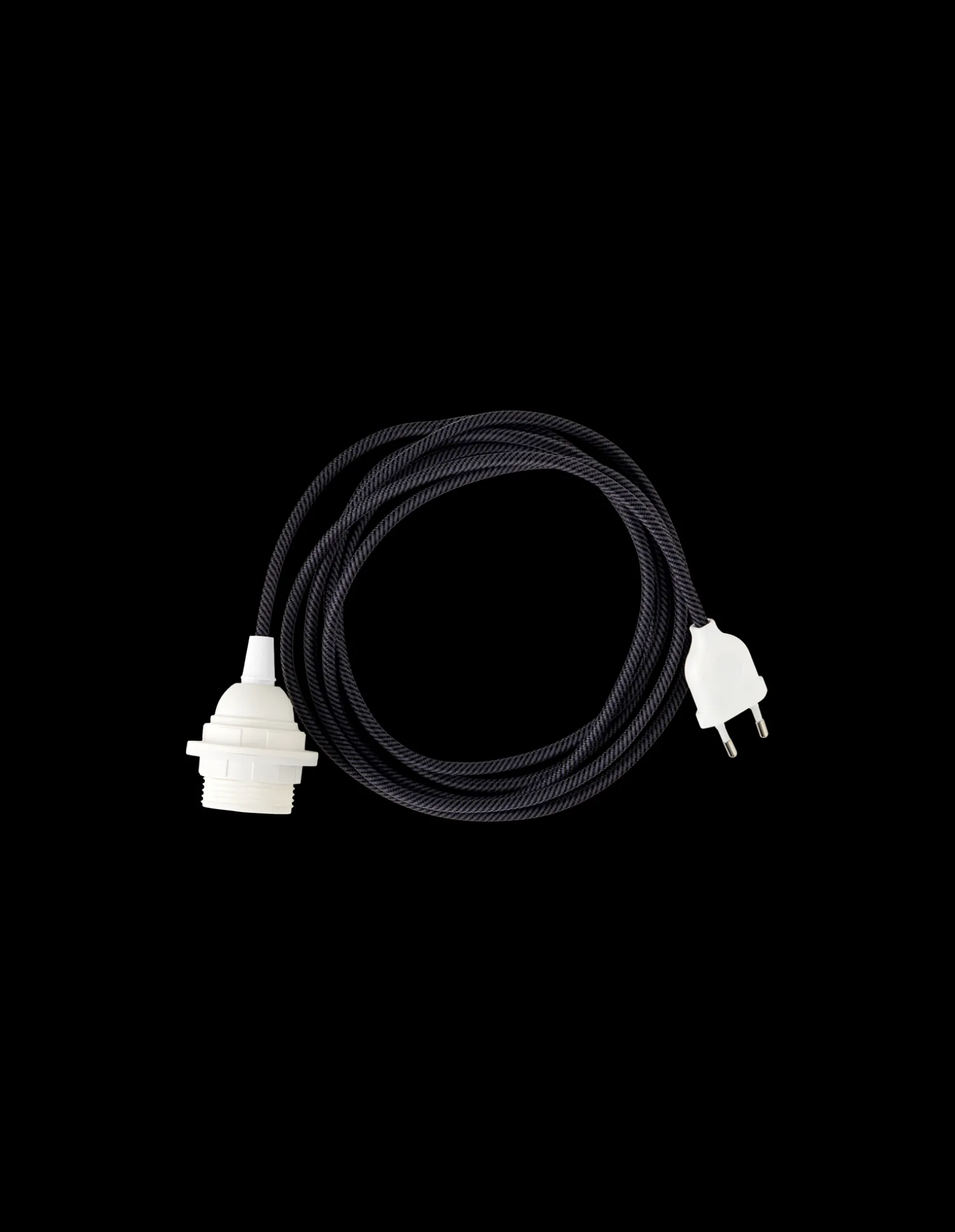 Søstrene legger vennlig til at dette produktet bare er tilgjengelig på internett, og at det leveres uten lyspære.Pendellampen med pæreholder fra Creative-Cables består av en tekstilkabel på 2,5 m, en hvit E27-pæreholder av termoplast, og et hvitt støpsel av termoplast. Kabelen er Original Creative Cable, som er vevd utenfor Turin i Italia.Anna og Clara liker å endre interiøret fra tid til annen for å skape en ny og forfriskende stil. Derfor falt de helt for denne vakre pendellampen med støpsel, som enkelt kan flyttes rundt. «De kan også bruke lyspærer med forskjellige former og farger for å skape et nytt uttrykk, eller kanskje en vakker lampeskjerm», sier Anna med et smil. «Og den fargerike tekstilkabelen skaper en fantastisk luksuriøs atmosfære.»