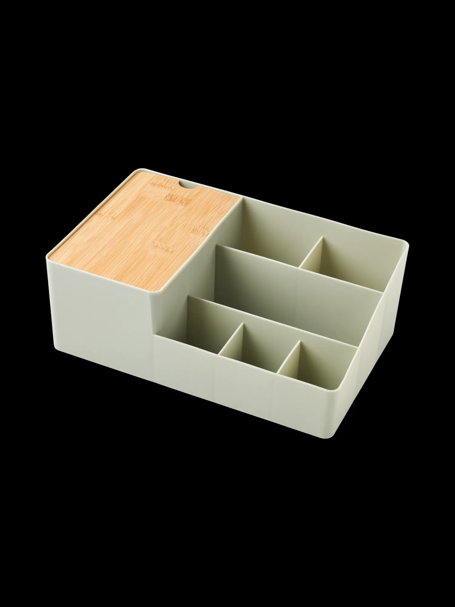 Søstrenes sminkeorganisator er laget av polypropylen og 100 % FSC®-sertifisert bambus.
