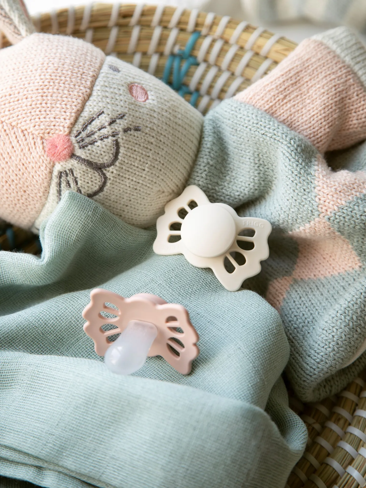 Smokkene Lucky fra det danske merket FRIGG er designet og produsert i Danmark. Pakken inneholder to FRIGG-smokker og én FRIGG-blisterpakning. Smokkene har et click-lock®-system og en ny SilkySoft™-sugedel. Sugedelen er laget av silikon av medisinsk kvalitet, og den er i størrelse 1, som er perfekt for alderen 0–6 måneder. Sugedelen har symmetrisk form, og den er 27 mm. Smokkene Lucky fra FRIGG er inspirert av firkløveren. Denne pakken inneholder en Cream-farget smokk og en Blush-farget smokk. Søstrene legger vennlig til at smokkene bør byttes ut etter 4–8 uker av hygieniske årsaker og for å ivareta sikkerheten. De bør alltid undersøke smokken før bruk, og den må kasseres ved det minste tegn på skade eller slitasje.