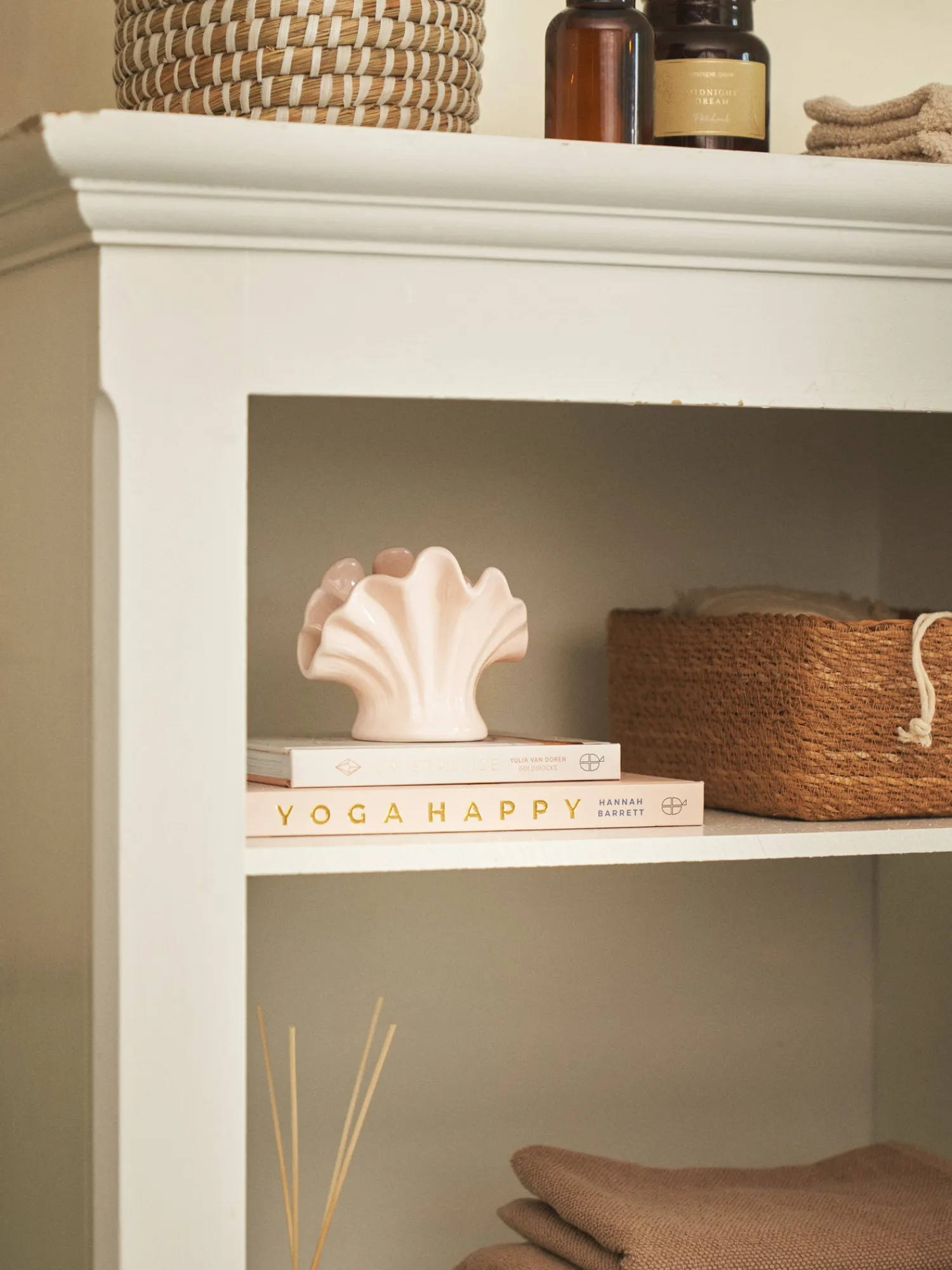 Søstrenes telysholder har en interessant og organisk form.Søstrene legger vennlig til at siden dette produktet har glasur, kan uttrykket variere noe.
