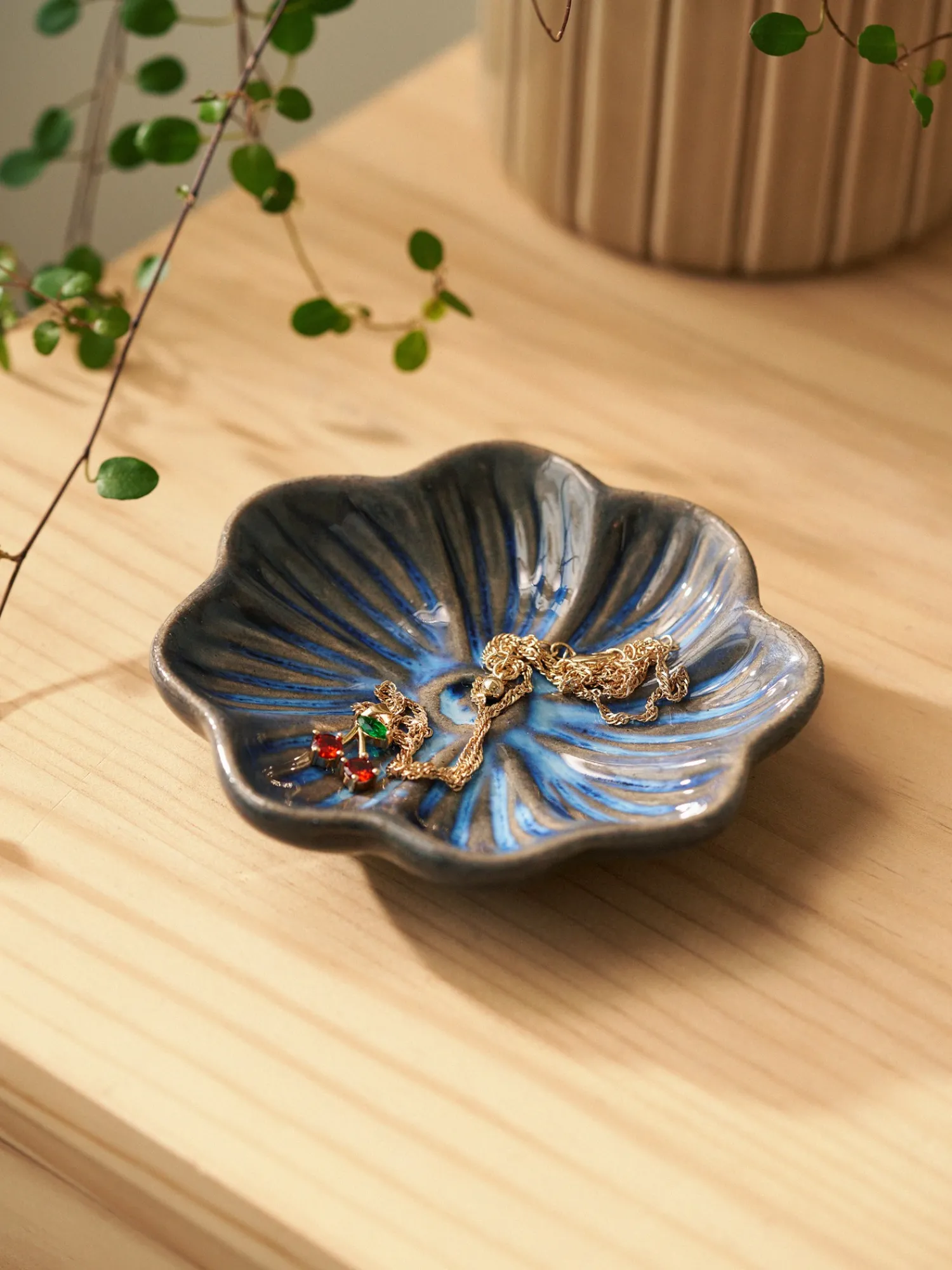 Søstrenes dekorative skål er laget av steintøy, og den er 8,5 x 2,5 cm stor.Siden dette er et produkt av steintøy, legger søstrene vennlig til at fargen og uttrykket kan variere noe.