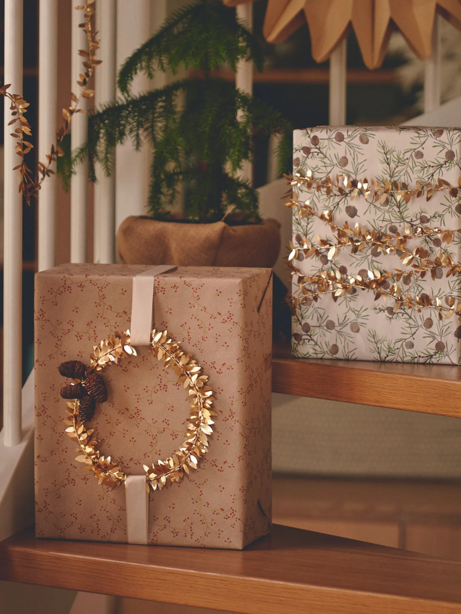 Søstrenes streng med dekorative metalliske blader er perfekt for å skape en festlig atmosfære i boligen.