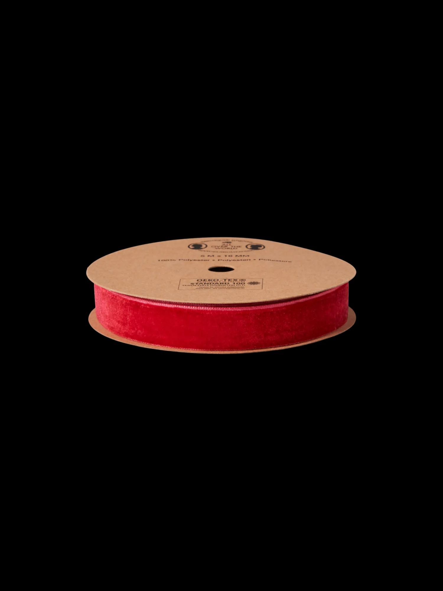 Søstrenes gavebånd av fløyel er STANDARD 100 by OEKO-TEX®-sertifisert. Det er 16 mm bredt og 5 m langt.
