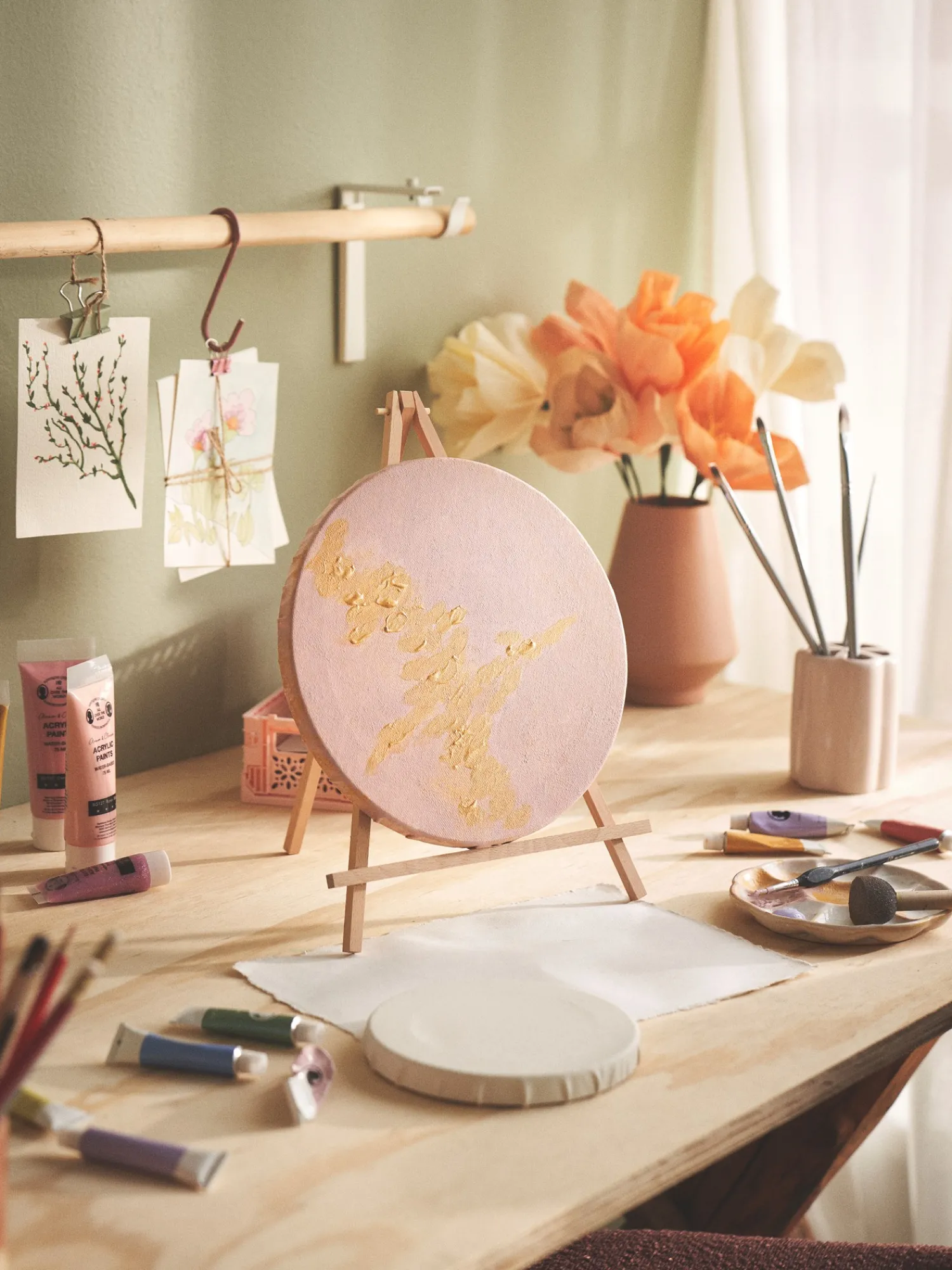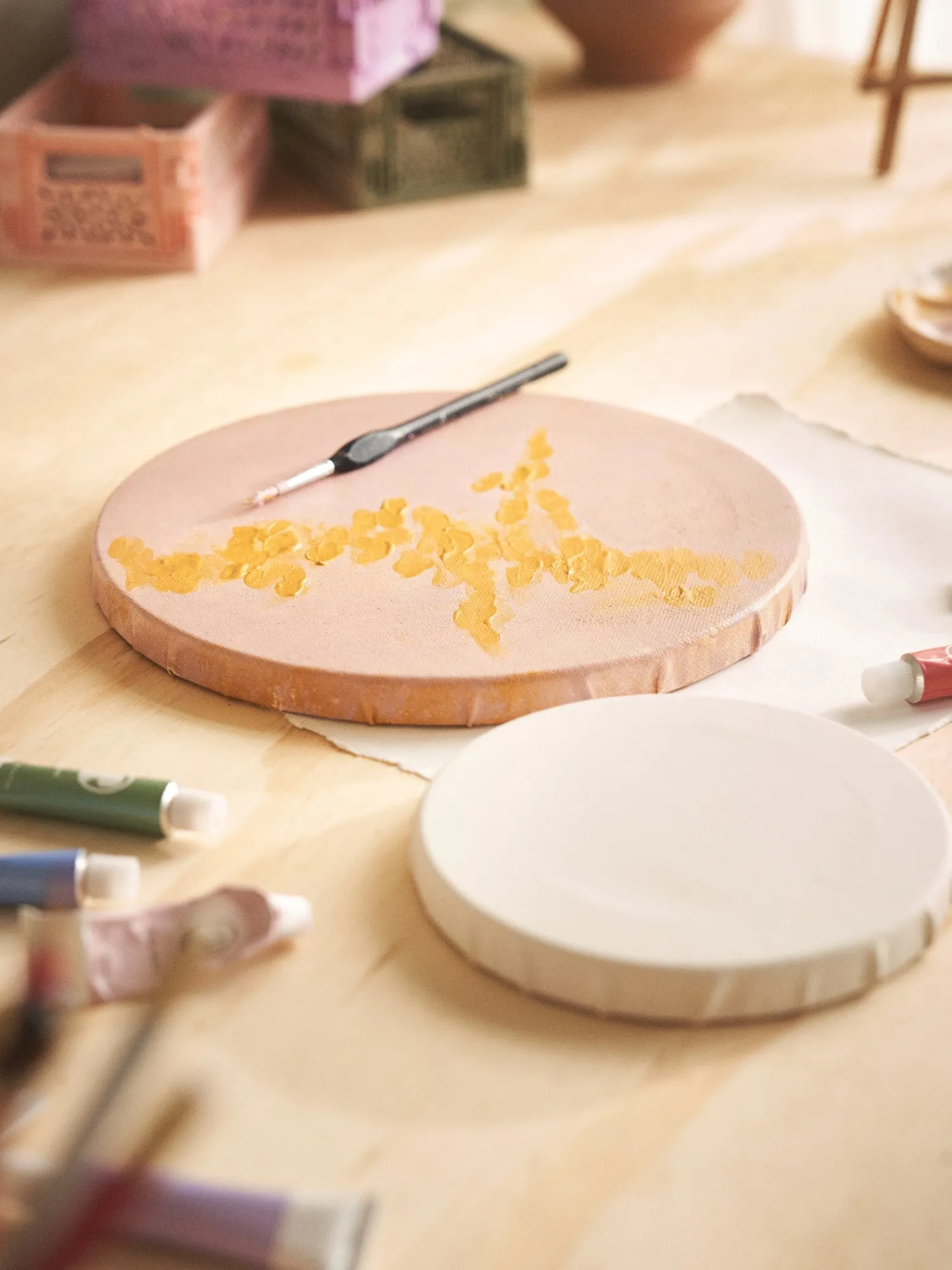 Søstrenes lerret er laget av bomull og FSC®-sertifisert MDF. Det er rundt, og det er 25 cm i diameter.