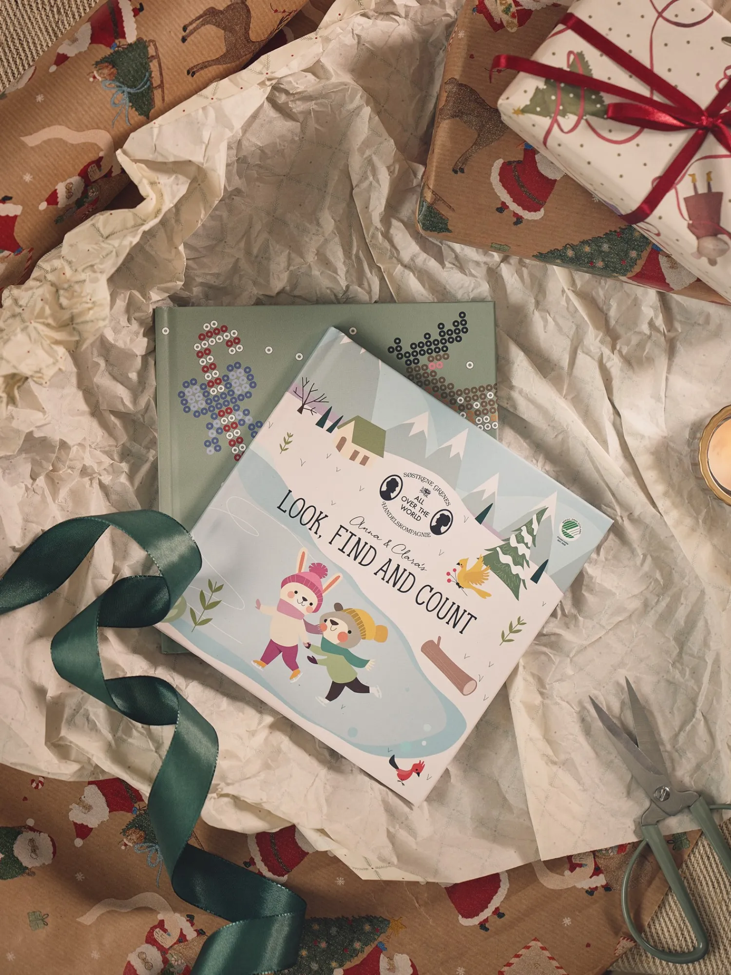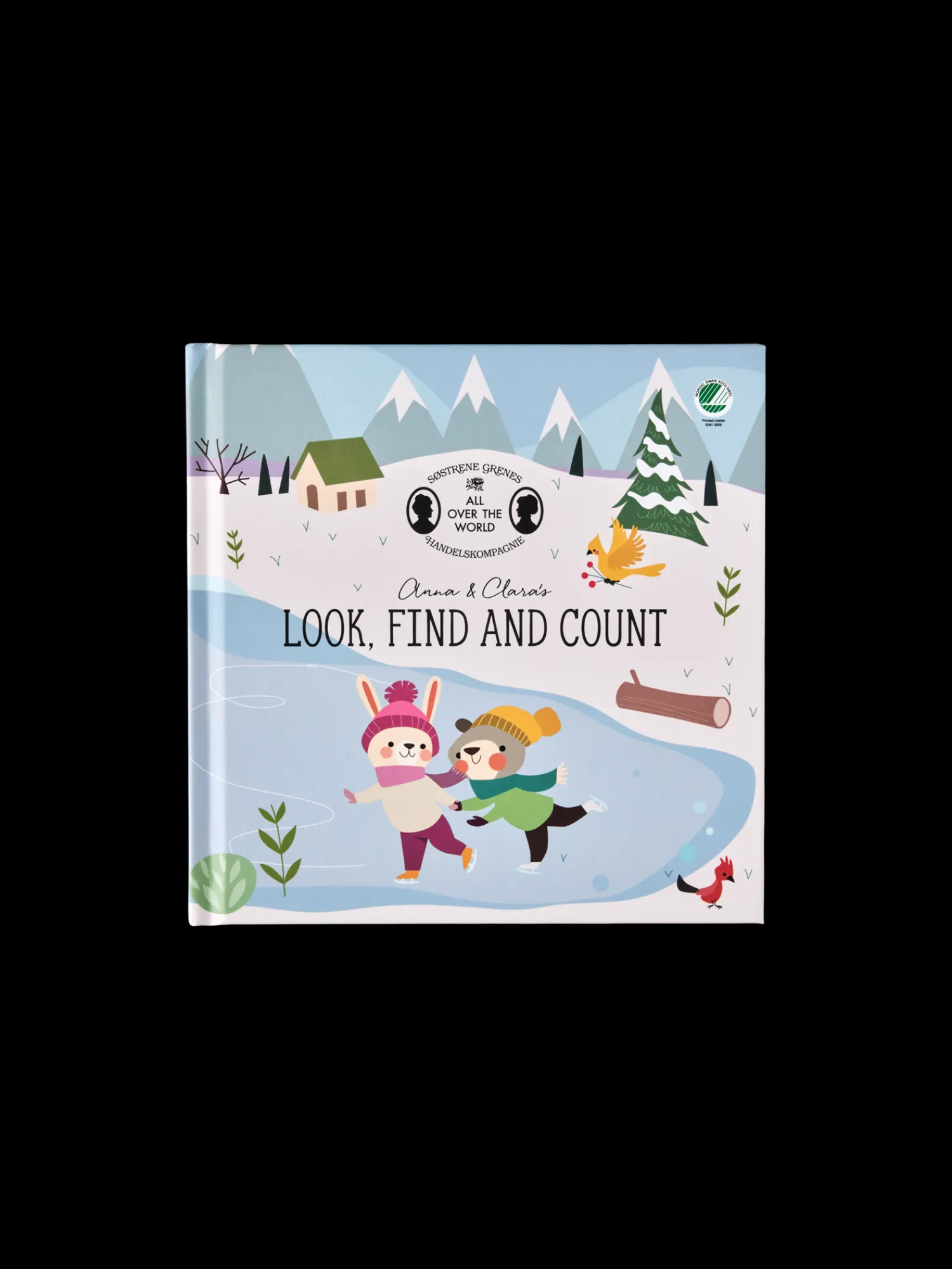 Søstrenes let, finn og tell-bok er laget av FSC®-sertifisert papir, og den er svanemerket. Boken er produsert i Danmark, og den inneholder 26 sider med morsomme aktiviteter for de minste.