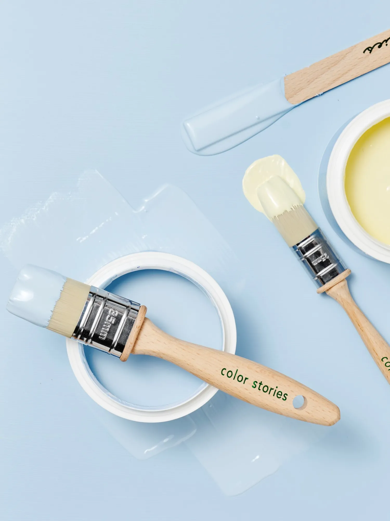 Søstrene minner vennlig om at produktet bare er tilgjengelig på nett.Malingen fra Color Stories i fargen Bornholm er en akrylmaling. Den selges i en boks på 450 ml, og den dekker 3–4 m2. Malingen kan brukes på en rekke overflater, for eksempel vegger, møbler, vinduskarmer og mye mer. Bruk to tynne strøk for perfekt dekning. Malingen er produsert i Danmark.«Å bruke farger i boligen er en vidunderlig måte å sette et personlig preg på interiøret på», sier Anna fornøyd. Hun er nettopp ferdig med å male to av stolene i spisestuen i søstrenes favorittfarger, og nå studerer hun veggen på hobbyrommet sitt med en bestemt mine.«Bare husk å dekke til alle overflater, slik at de ikke får like mange malingsflekker som ansiktet Deres, kjære Anna», ler Clara. «Det har De helt rett i», svarer søsteren. «Og så må vi bruke maskeringstape langs kantene, slik at vi får rette linjer.»Søstrene anbefaler at De lar malingen tørke i 6–12 timer mellom hvert strøk. De minner vennlig om at malingen ikke leveres med annet maleutstyr, og at fargen kan avvike fra den De ser på skjermen.De finner en maleguide på søstrenes merkevareside Color Stories.