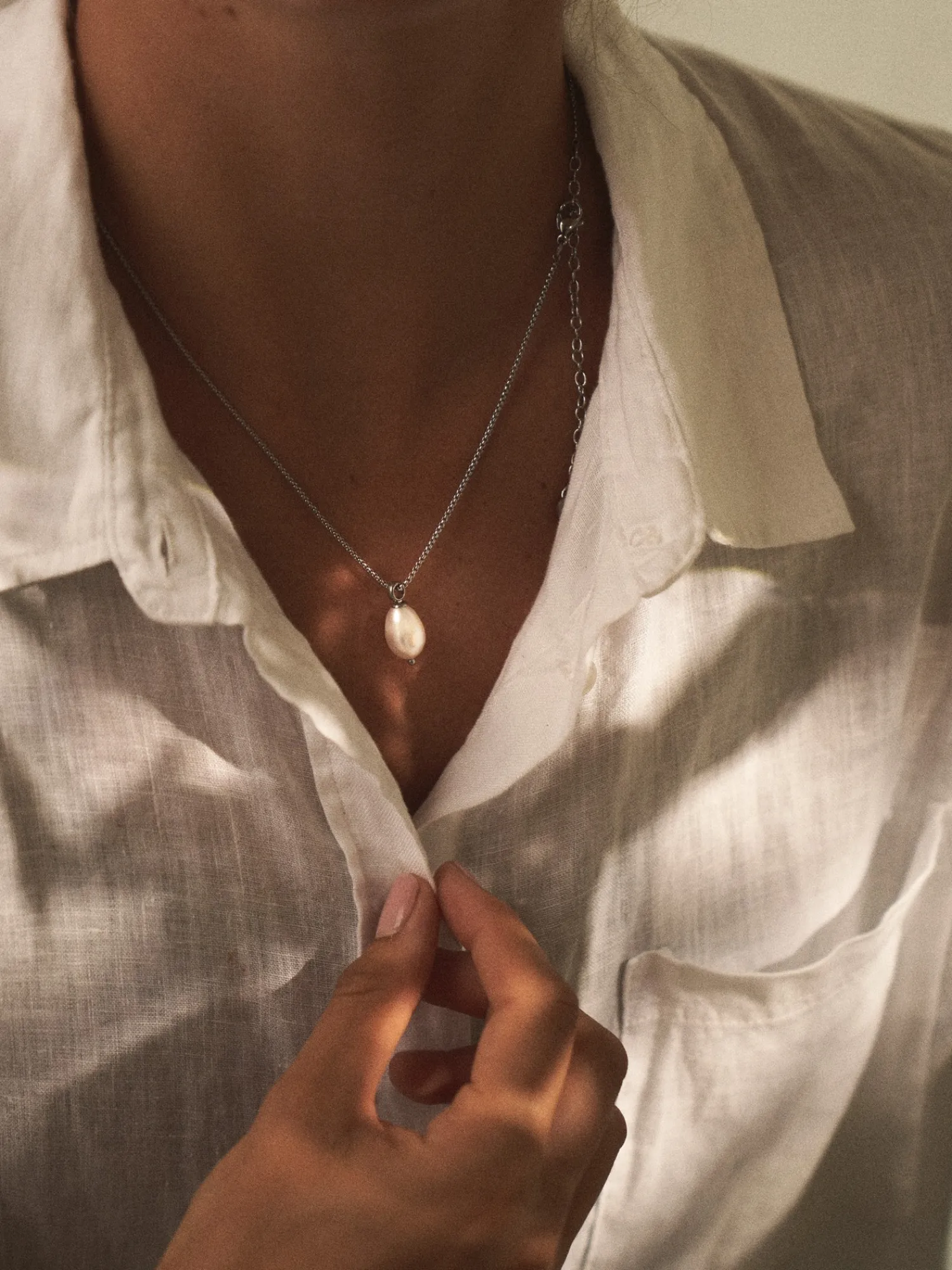 Halskjedet Pearl fra Bud to Rose er et tidløst smykke. Den er laget av rustfritt stål og har en ferskvannsperle. Det er 45 cm langt og har en forlengelse på 8 cm.Søstrene minner vennlig om at De bør unngå direkte kontakt med fuktighet og væsker for å forlenge produktets levetid. I tillegg anbefales det at De tar av dem smykkene Deres før De dusjer, trener eller legger Dem for kvelden, slik at den blanke overflaten bevares.