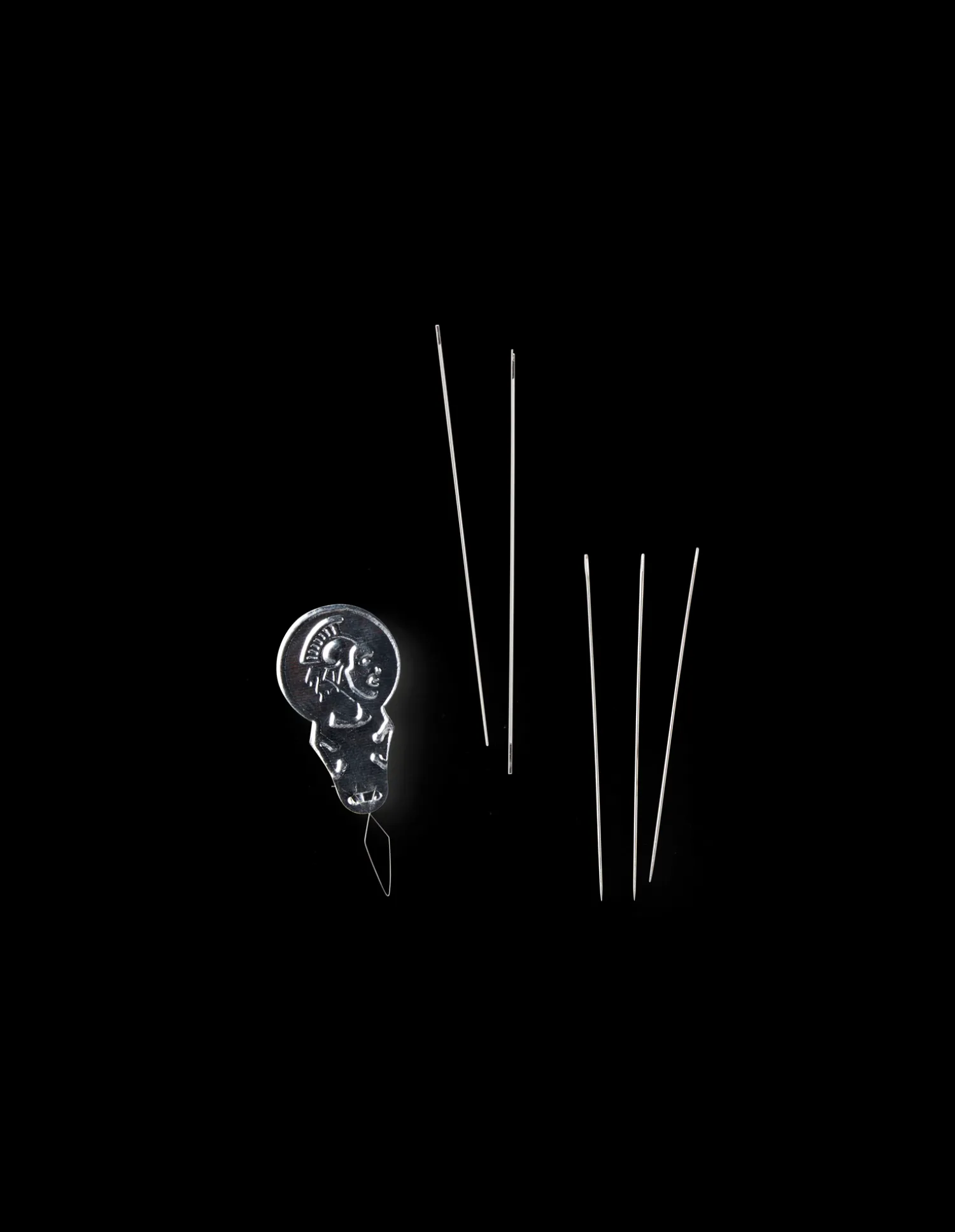 Søstrenes sett med nåler består av fem nåler og én nålitreder. Et sett med alt man trenger, mener søstrene.