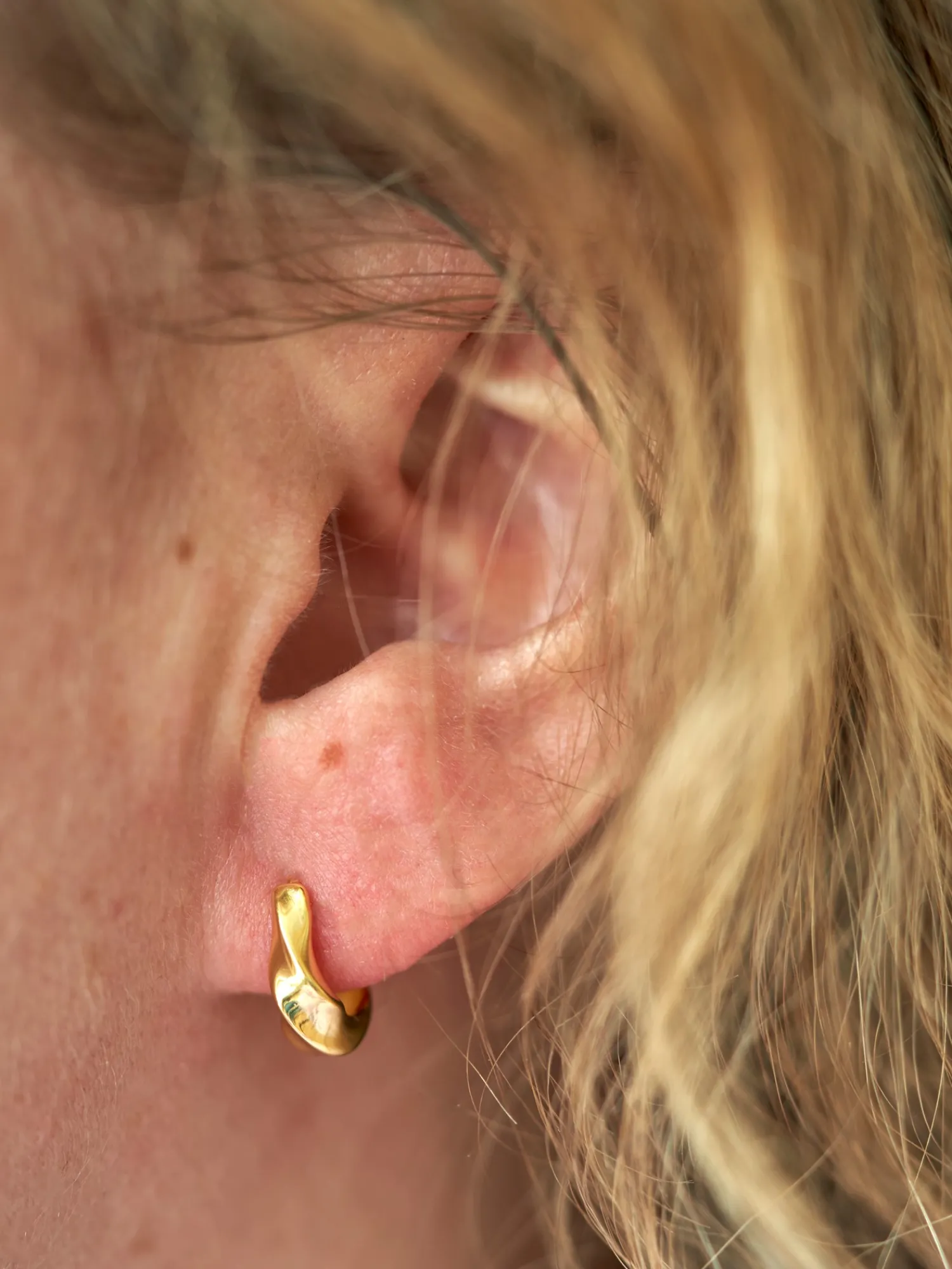 Søstrene minner vennlig om at dette produktet bare er tilgjengelig på nett.Rookie-øreringene er laget av 925 sterlingsølv som er belagt med 18 karat gull. De to øreringene er 1,2 cm i diameter, og de leveres i en liten, vakker smykkeeske.«En elegant variant av den klassiske øreringen», sier Anna med et smil. Anna og Clara minner vennlig om at De bør unngå direkte kontakt med fuktighet og væsker, slik at gullbelegget varer lenger.