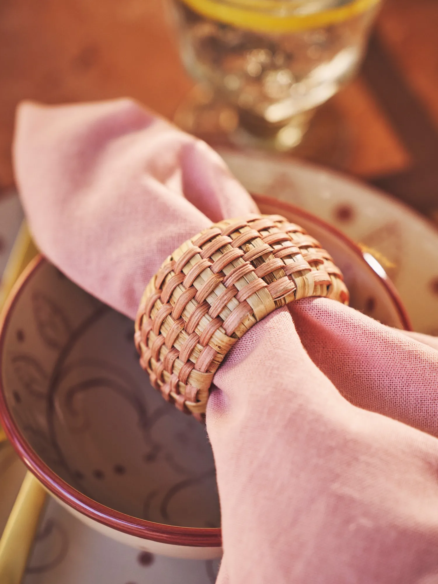 Søstrenes serviettring er laget av 100 % FSC®-sertifisert rotting. Det er 4,5 cm i diameter. Søstrene legger vennlig til at siden dette produktet er laget av et naturlig materiale, kan fargen og uttrykket variere noe.