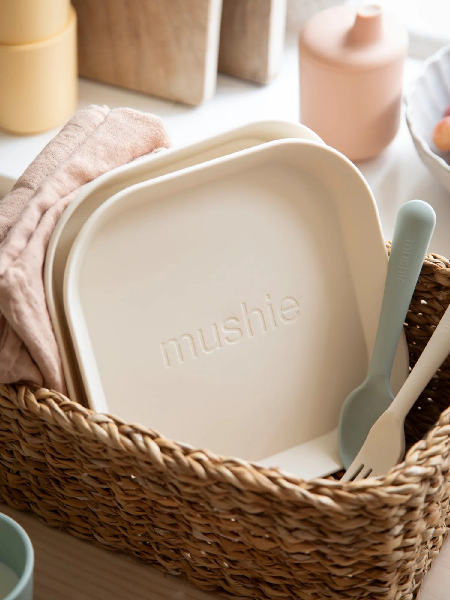 De firkantede tallerkenene fra Mushie selges som en pakke med to stykker. Disse tallerkenene er laget i Danmark, og de tåler oppvaskmaskin og mikrobølgeovn, slik at både måltidene og rengjøringen blir enklere. Med myke farger og ren design er disse middagstallerkenene for barn både elegante og minimalistiske. De passer i enhver bolig. Produktet skal alltid brukes under tilsyn av voksne. Kontroller produktet før bruk. Hvis det har tegn på skader eller svekkelser, må det kasseres.