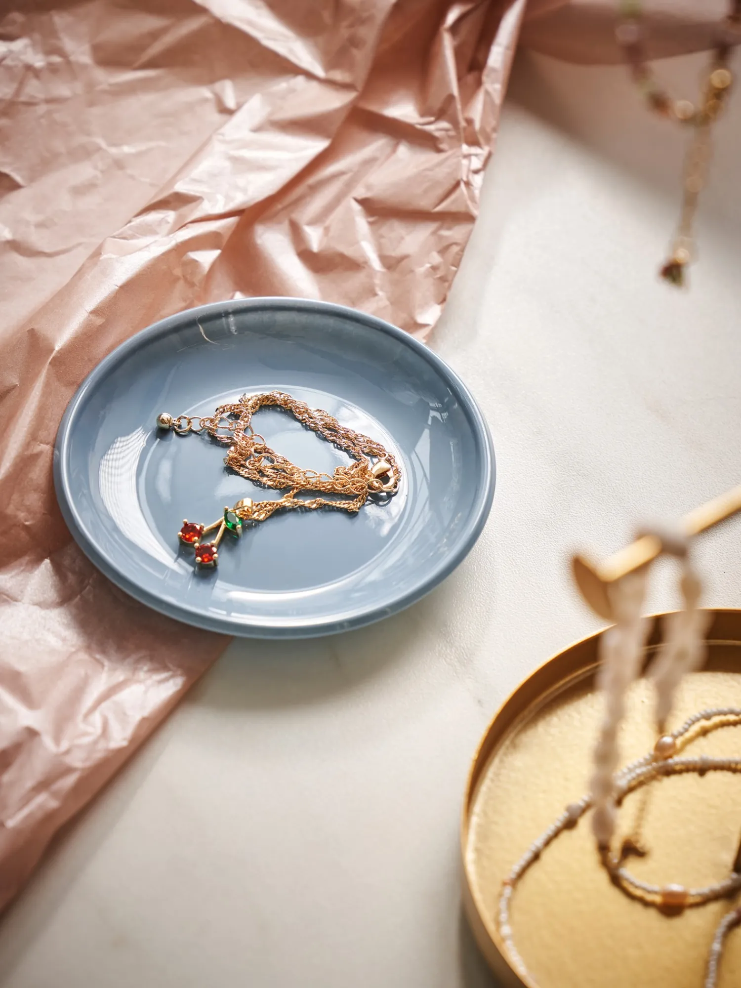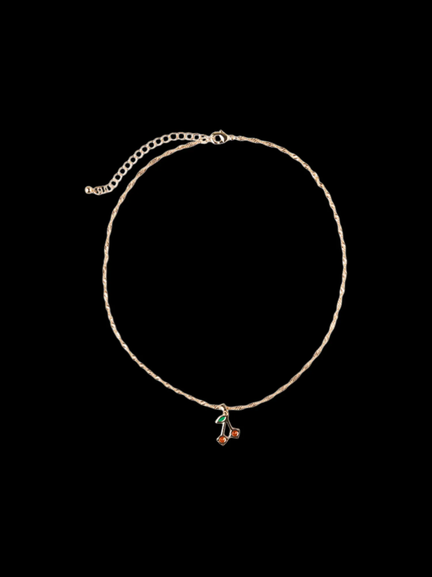 Søstrenes halskjede er 46 cm langt, og det har et fint kirsebæranheng.