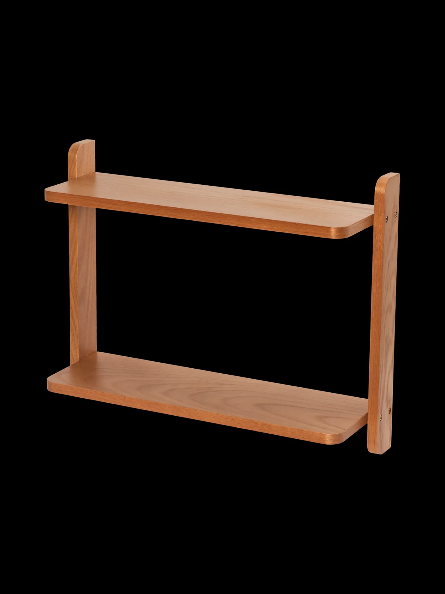 Søstrenes vegghylle er laget av 100 % FSC®-sertifisert MDF med eikefiner. Den har to hyller.