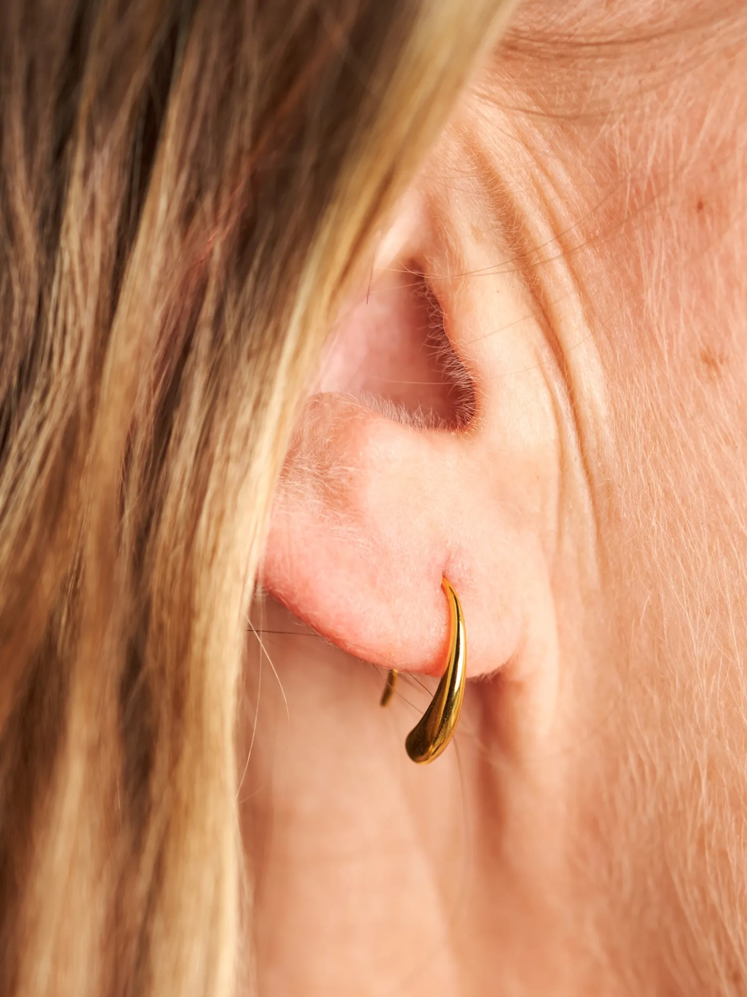 Søstrene minner vennlig om at dette produktet bare er tilgjengelig på nett. Øreringene Amy er laget av 925 sterlingsølv som er belagt med 18 karat gull. De to øreringene er 8 x 3 x 14 mm, og de leveres i en liten, vakker smykkeeske.«Øreringene Amy har en myk og rund form som gir de klassiske øreringene en ny vri», sier Clara med et smil. «Et perfekt tilskudd til smykkeskrinet.»Anna og Clara minner vennlig om at De bør unngå direkte kontakt med fuktighet og væsker, slik at gullbelegget varer lenger.