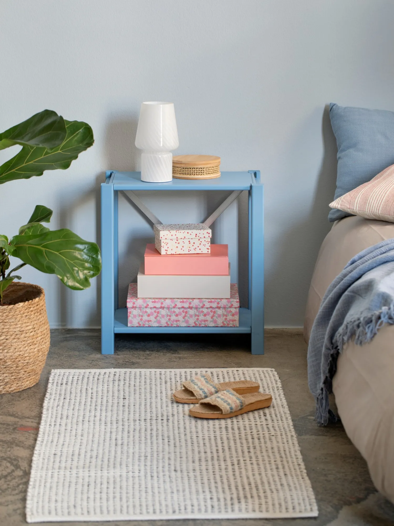 Disse nattbordene fra det danske merket ABC Classic har en klassisk design, og de er laget av lys furu som fremhever treverkets vakre, naturlige kvaliteter – inkludert kvistene. Dette gjør hvert møbel vidunderlig unikt. Hvert lille nattbord har to hyller, inkludert toppen, og de har god plass til alt De trenger ved sengen. Det kan også brukes som et flott sidebord.Søstrene legger vennlig til at nattbordene må monteres.