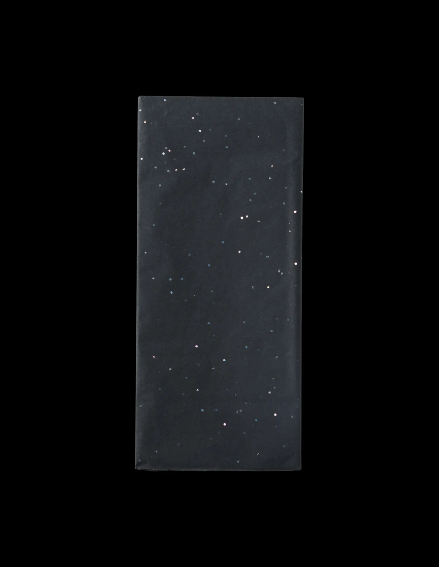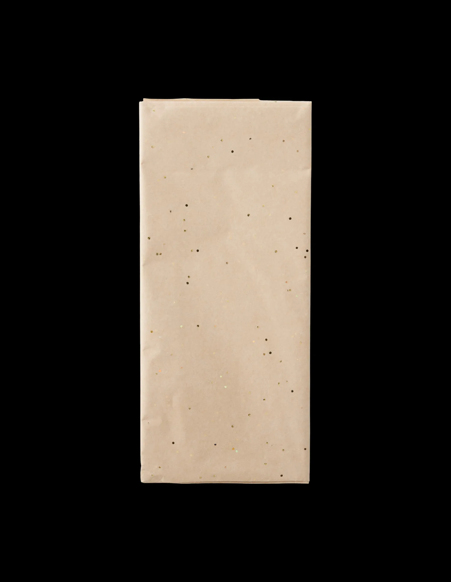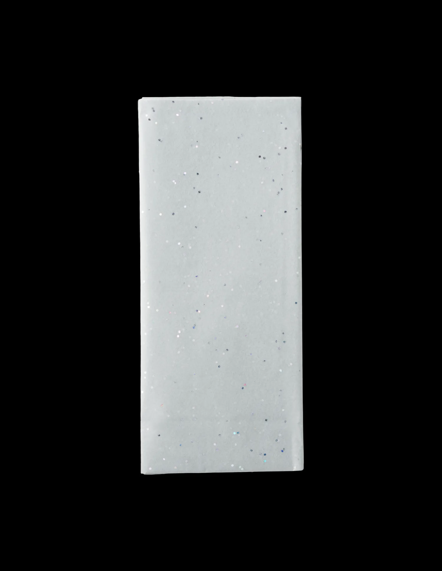 Søstrenes silkepapir med glitter er FSC®-sertifisert, og pakken inneholder fire ark på 50 x 75 cm.