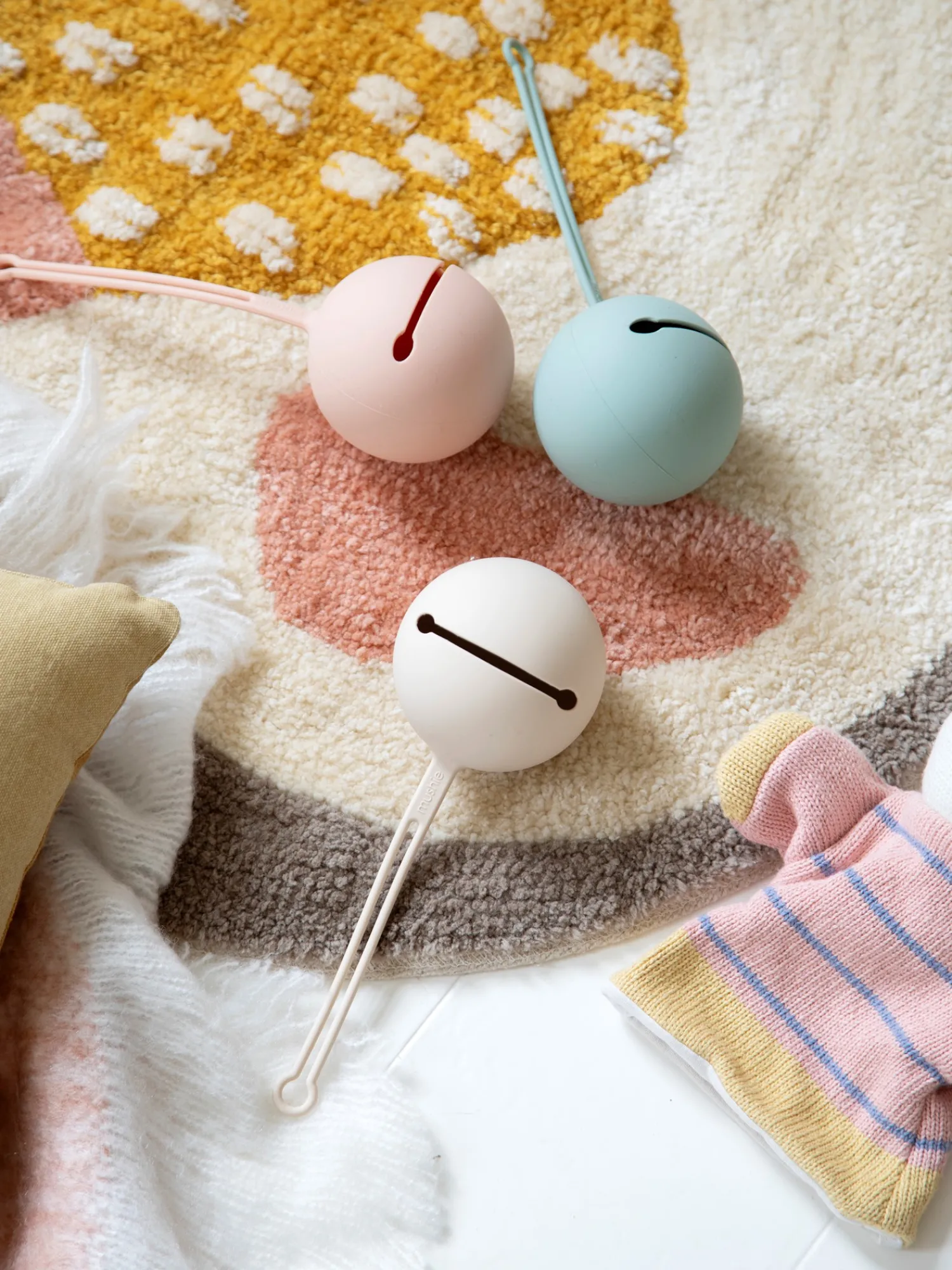 Smokketuiet fra Mushie er laget av næringsmiddelgodkjent silikon.Etuiet er egnet for alle smokker, og den gjør det enkelt å ha smokken innen rekkevidde takket være stroppen, siden den enkelt kan festes til bleievesken eller barnevognen. Etuiet har plass til opptil tre smokker. Søstrene anbefaler at De rengjør produktet med varmt såpevann. Produktet skal alltid brukes under tilsyn av voksne. Kontroller produktet før bruk. Hvis det har tegn på skader eller svekkelser, må det kasseres.