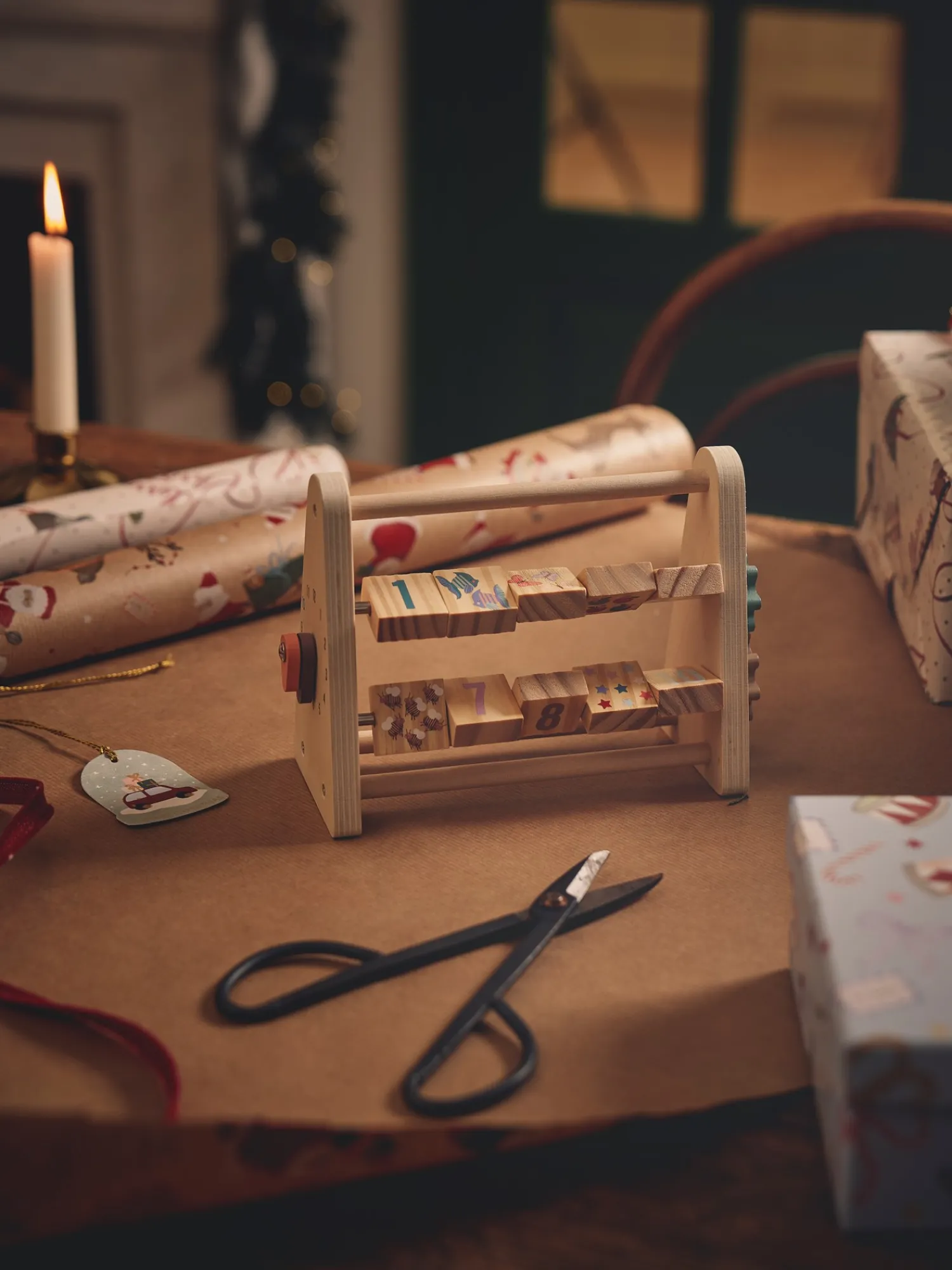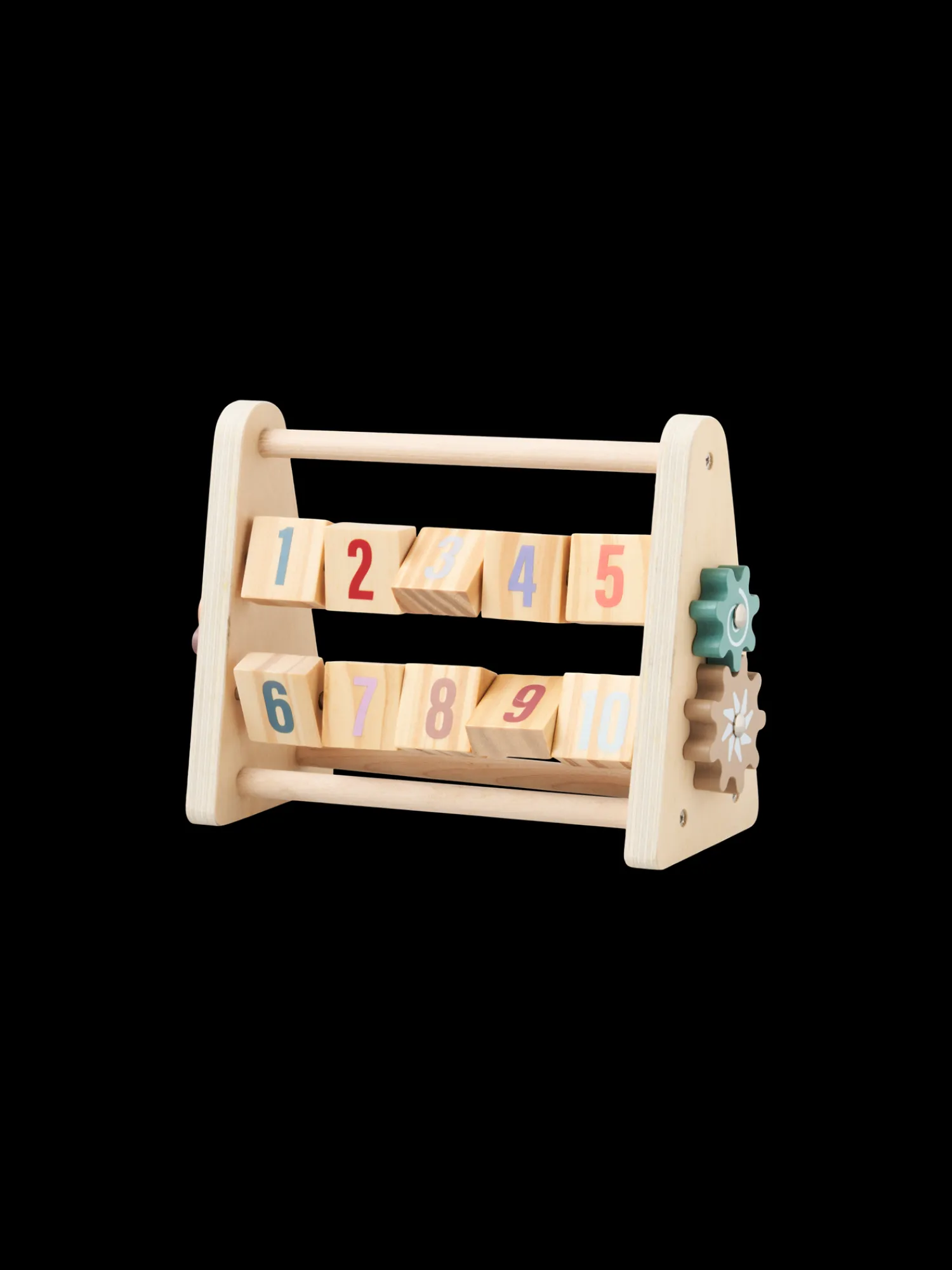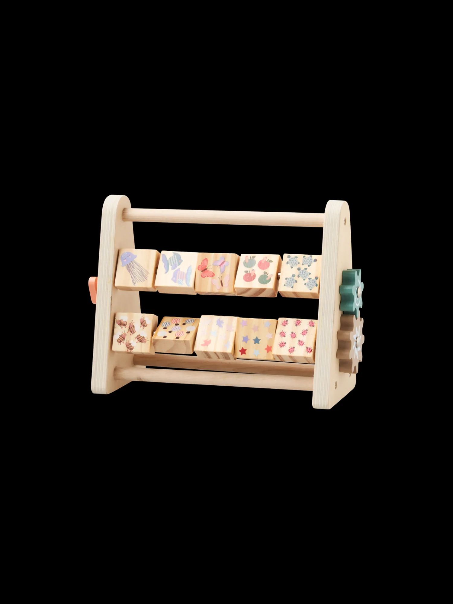 Søstrenes kuleramme med klosser med tall av tre er laget av 100% FSC®-sertifisert. Den er 19 x 9,5 x 16,5 cm. Kulerammen har tallene 1–9 på den ene siden av klossene, og søte mønstre som tilsvarer tallene, på den andre siden.
