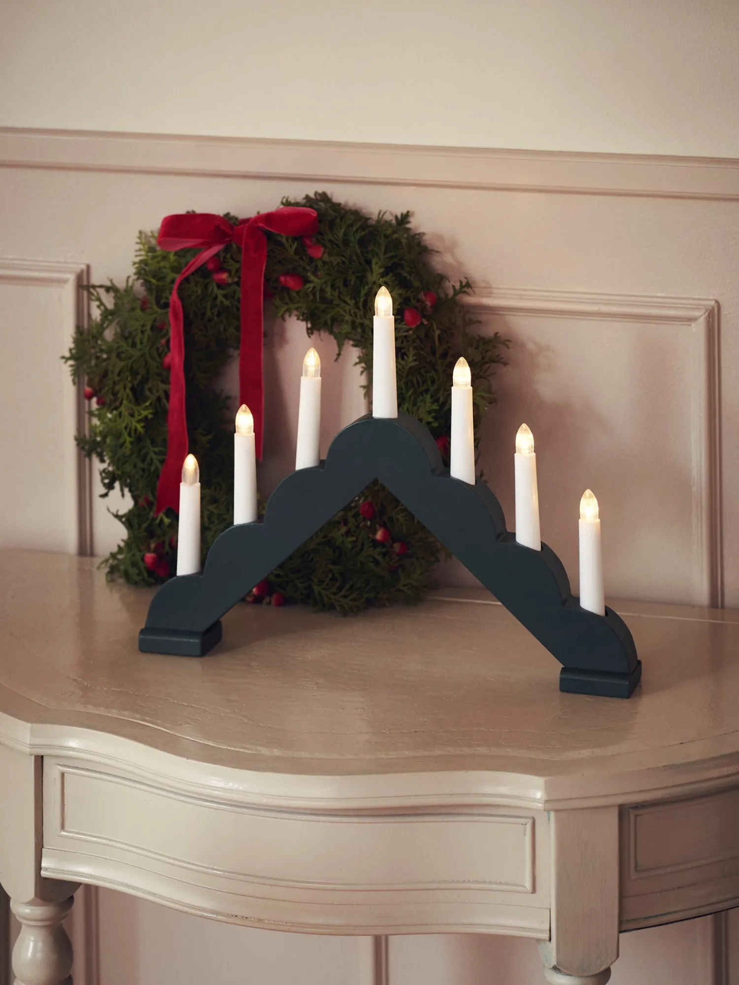 Søstrenes lysbro er laget av FSC®-sertifisert furu, og den er en klassisk dekorasjon som passer perfekt i vinduskarmen eller på et sidebord i julen.Søstrene legger vennlig til at de to AA-batteriene som trengs, ikke medfølger, men kan kjøpes separat.