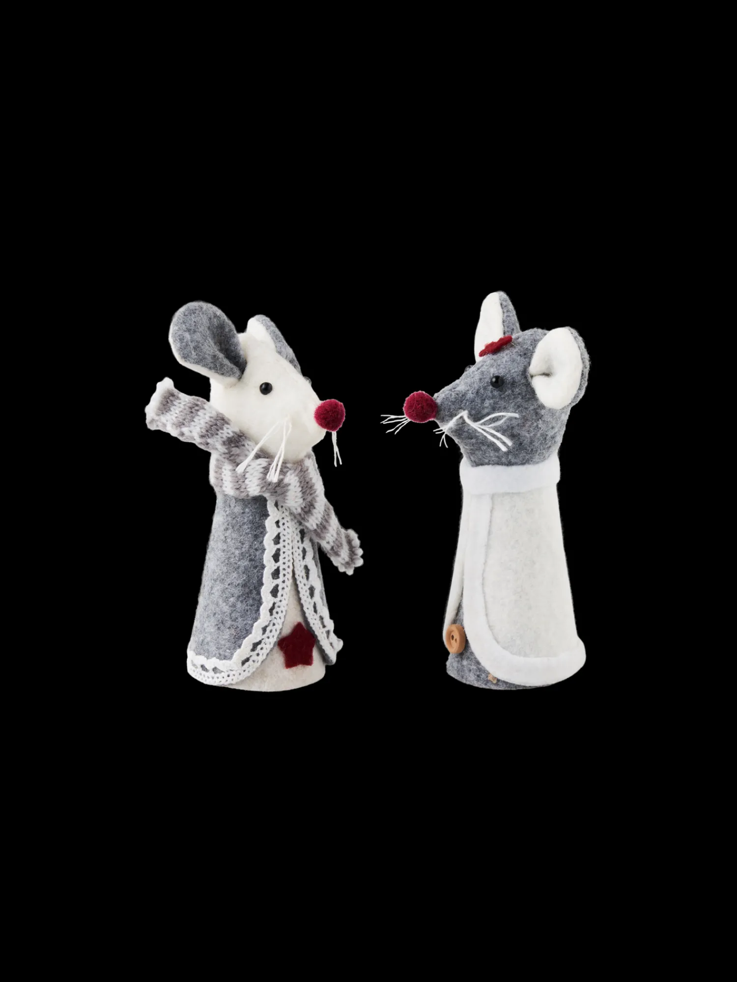 Søstrenes DIY-sett inneholder materialer av polyesterfilt og 100 % FSC®-sertifisert schima superba for å lage to søte julemus.Nyt en stund med julekreativitet med Anna og Clara.