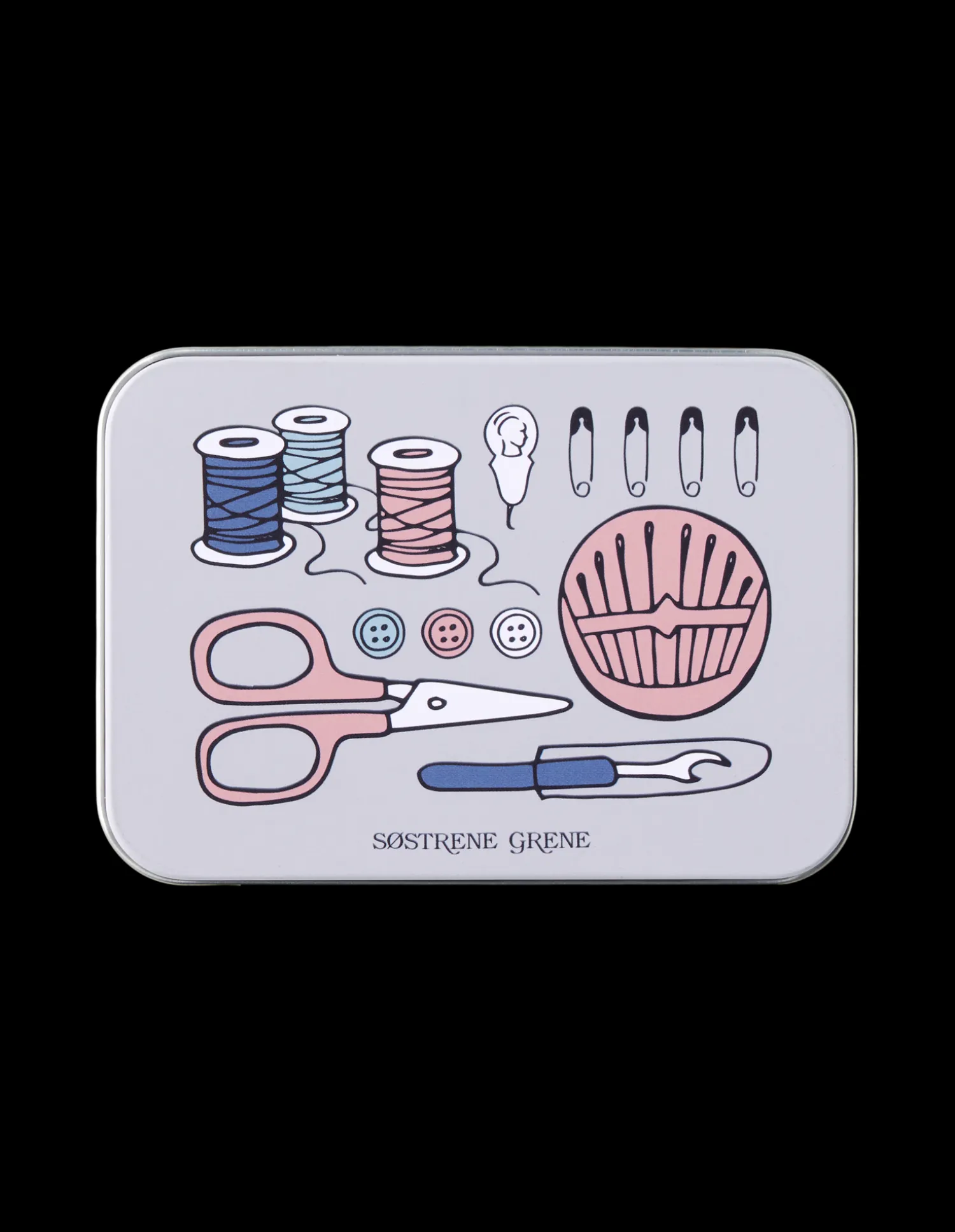 Anna og Claras syboks av metall er 10,5 cm lang, 7 cm bred og 3,5 cm høy. Samle alt sytilbehøret Deres i søstrenes praktiske syboks. «Kreative sysler er blant livets store gleder», mener Anna.